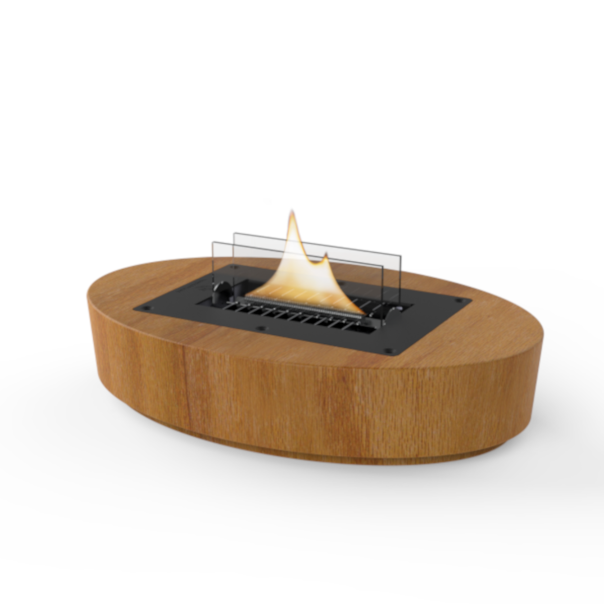 Owalny kominek nablatowy z poziomym knotem - idealny na długie wieczory. Jego charakterystyczny owalny kształt i czyste linie uosabiają minimalistyczne piękno.
