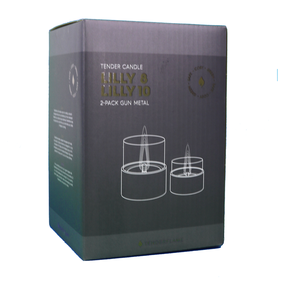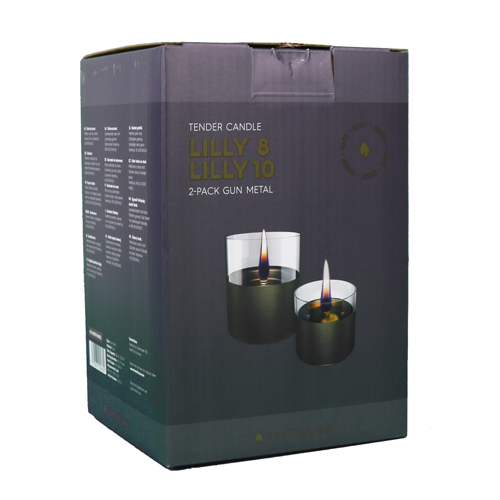 Zestaw świec w kolorze gun metal - Lilly 10 i Lilly 8 dealny dla tych, którzy cenią sobie przytulną i romantyczną atmosferę.